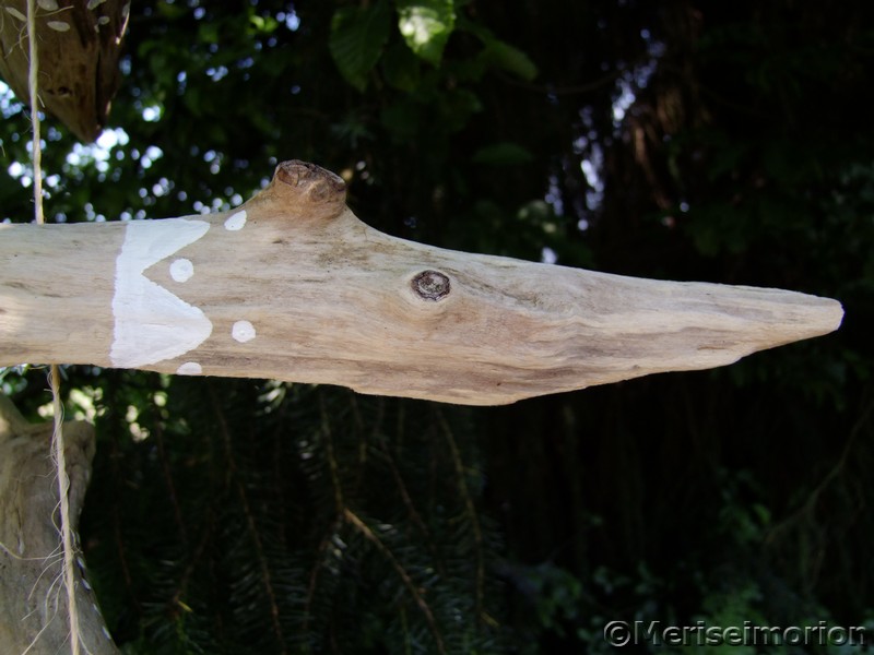 Viele kleine Holzstücke habe ich außerdem auf eine grobe Kordel gefädelt, im Wechsel mit schönen Muscheln und Perlen…..
